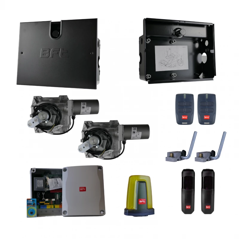 Motorisation électromécanique enterré kit ELI BT A35 de marque BFT 24 V pour portail 2 battants d’une rgeur maximum de 2 x 3,5 m, et d’un poids maximum de 2 x 200 kg.